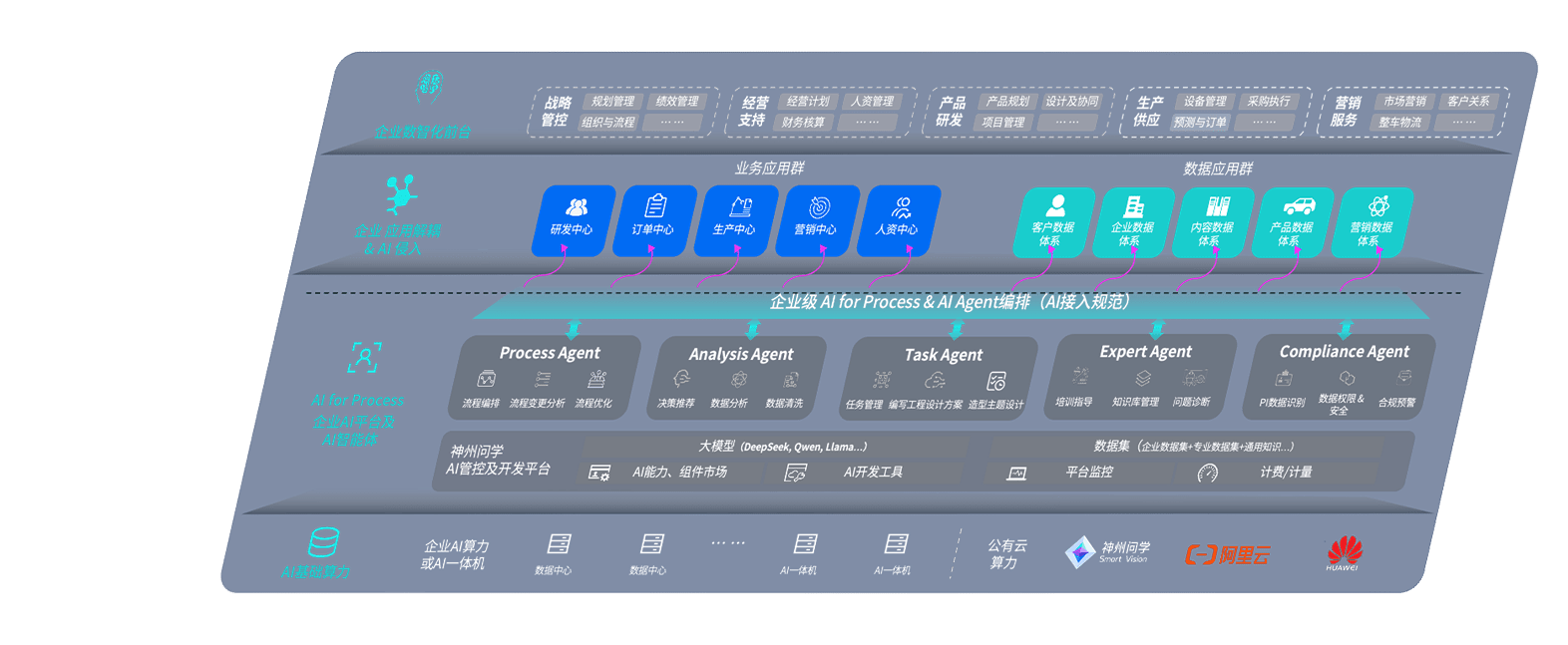 安币问学智车解决方案是一套基于AI技术的汽车行业智能化系统,,覆盖从底层算力到顶层AI应用的全栈方案。。方案由算力层、、、、模型层和应用层组成:算力层,,,方案支持多种一体机配置,,,具备云端灵活部署、、、、多云适配以及动态优化计算资源的能力;模型层,,安币问学平台版提供了企业级AI应用一站式构建与管理平台,,,,支持基于后训练强化技术的汽车企业专属模型的训练、、、评测和运营;应用层,,,安币问学DeepSeek版提供包括超级员工、、、、智能招采、、智能营销、、、、智能客服、、AI for BI等一系列解决方案,,,,可助力汽车行业实现数字化转型,,让管理更智能、、、响应更敏捷。。。
